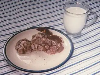 These saucepan fudge crackle cookies are true chocolate cookies. They are brownie-like or cake-like. They tend to have a dome-like surface that stands ½–¾-inch tall, and have a diameter of 2.5–5 inches. The surface is cracked.