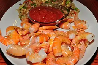 Cocktail sauce, sometimes also called seafood sauce, is typically a tomato-based sauce served with seafood.