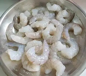 A more difficult and dangerous deep fat frying procedure can be used to produce fried shrimp. There are several types including Southern fried shrimp (non-puffy batter containing cornmeal) or Chinese fried shrimp (puffy cornmeal-free batter, as used in westernized Chinese cooking), and tempura (thin and sometimes flakey Japanese style).
