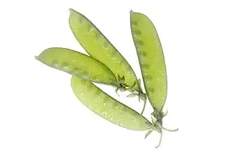 The snow pea is a type of pea that is eaten whole, immature, and still in the pod. It is commonly stir-fried in East Asian cuisine. They can also be eaten as sprouts.