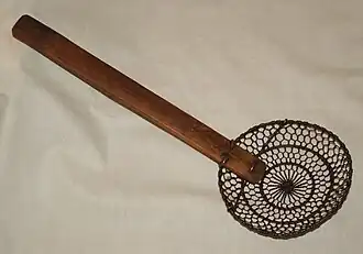 A spider is a type of skimmer used in Asian cooking in the form of a wide shallow wire-mesh basket with a long handle, used for removing hot food from a liquid. The name is derived from the wire pattern, which looks like a spider's web.