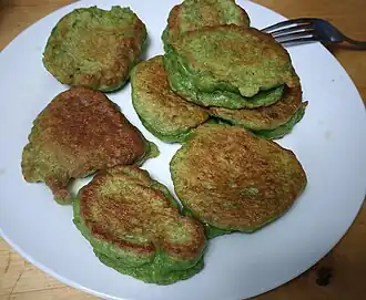 - Dollop spoonfuls of batter on the pan to make a few fritters about 3 cm apart from each other.