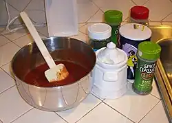 - Add sugar, salt, pepper, parsley, basil, oregano, and crushed garlic to bowl.