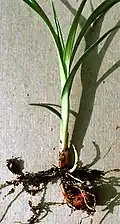 Tigernuts are not nuts, but edible tubers with a slightly sweet, nutty flavour compared to the more bitter tasting tuber of the "purple nutsedge". They are quite hard and are generally soaked in water before they can be eaten. They have various uses, in particular they are used in Spain to make horchata. They are sometimes known by their Spanish name, chufa. Other common names for these tubers are "earthalmond" and "yellow nutsedge".