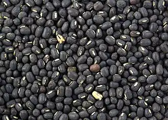 Urad bean, also urd, black gram, sometimes mistaken for black Beluga lentils, are little black beans with creamy white interiors, used in cooking across South Asia. Whole Urad bean is used mainly in stews and soups. They derive their strong, rich, earthy flavor from the black skins, and have an uncanny ability to absorb flavors.