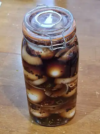 This recipe is used to preserve eggs for a longer period of time in comparison to having raw eggs stored in a refrigerator. Pickled eggs make for a tasty snack or are good in salads.