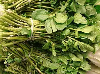 Watercress is a semi-aquatic perennial, and is one of the oldest known green vegetables consumed by human beings. Watercress is found to contain significant amounts of iron, calcium and folic acid, in addition to vitamins A and C. In some regions watercress is known as a weed, in other regions as an aquatic vegetable or herb. Where watercress is grown in the presence of animal waste, it is a known haven for parasites such as the liver fluke.