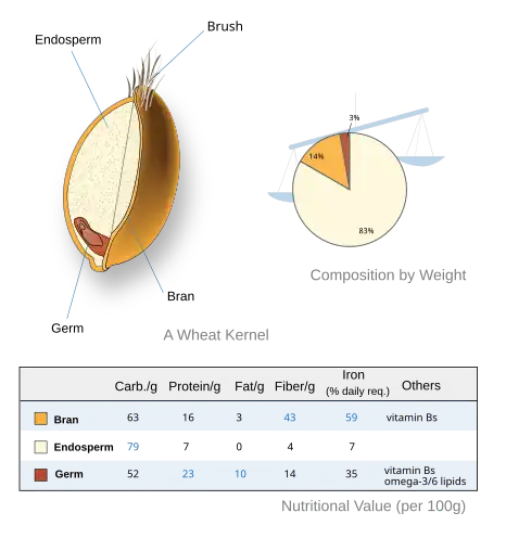 Wheat kernels are cleaned and then crushed to separate the bran, germ, and endosperm. The germ is then separated out, dried, and packaged.