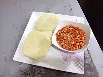 Yam and egg sauce is a dish eaten mostly as breakfast
