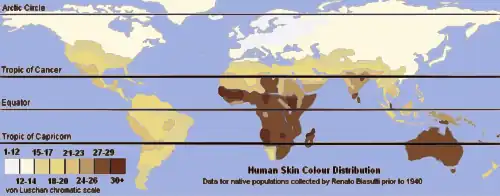 An example of human variation can be found with a cline. A cline is a genetic variation between populations of species that are isolated in their reproduction (such as skin color variation in humans). Human skin color variation is a selective adaptation that relates to the populations' proximity to the equator. Because of pigmentation characteristics within the human population, a system and term emerged to categorize the differing variations. This category is recognized as race. Populations of humans in equatorial regions have selective advantages as a result of their darker skin pigmentation, whereas populations in more northern environments have less selective pressure to evolve darker pigmentation and have lighter skin. Other clines include differences in stature and hair type.