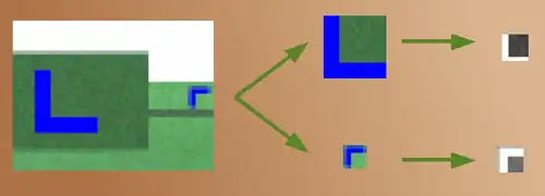 The purpose of this exercise is simply to recognize some landmarks on the wall. Your e-puck should be able to move randomly in a maze (see the figure) and, each time its camera is refreshed, to recognize the landmarks that it sees. The figure called "4 landmarks to recognize" depicts the landmarks used in this exercise. Note that the camera values are complex to treat. First, there are a huge number of values to treat (here: 52*39*3=6084 integers between 0 and 255). Moreover, some noise surrounds these values.