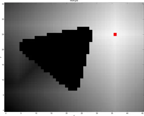 The result of this process can be seen on figure called "Cell decomposition and distance to goal with NF1". We get a discretized gradient which is similar to the potential field we had before.