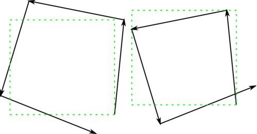 [P.4] Run the third test with key '3', the robot will move and come back near its start position. If the square is not closed, as shown on the figure called "Open and closed square trajectories", increase the left diameter and decrease the right diameter in odometry.c. This means: and . If on the contrary the trajectory is too closed, as shown on the same figure, decrease the left diameter and increase the right diameter.