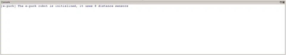 You should observe a small board, on which there is just one obstacle. To test the IR sensors, you can move either the e-puck or the obstacle. Please note also that the window depicted in the figure. This window is called the log window. It displays text. Two entities can write in this window: either a robot controller or Webots.