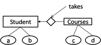 - many-many relation - the key for the relation representing relationship must be the union of keys from the participating entity sets