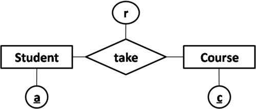 The key of 'takes' depend on the cardinality of the relation. The key for each cardinality of the relation is: