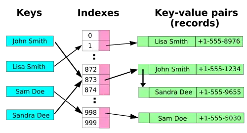 Hash tables may be used as in-memory data structures. Hash tables may also be adopted for use with persistent data structures; database indexes commonly use disk-based data structures based on hash tables.