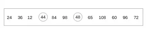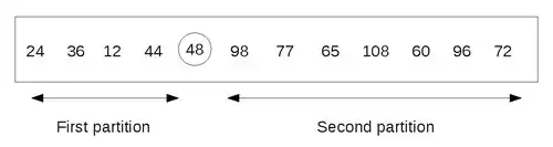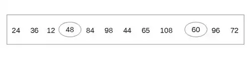 Now, the reduction step causes 48 to be fixed to the 5th position and creates two partitions, one from position 1 to 4 and the other from position 6 to 12. Hence, the values 1 and 6 are pushed into the LOWERBOUND stack and 4 and 12 are pushed into the UPPERBOUND stack.