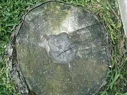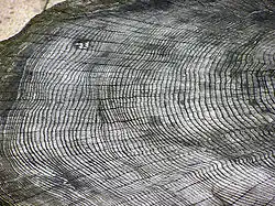 The growth rings of an unknown tree species, at Bristol Zoo, England