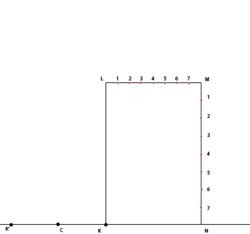 2. Construct rectangle KLMN. Then divide the top side and right side into equal parts.