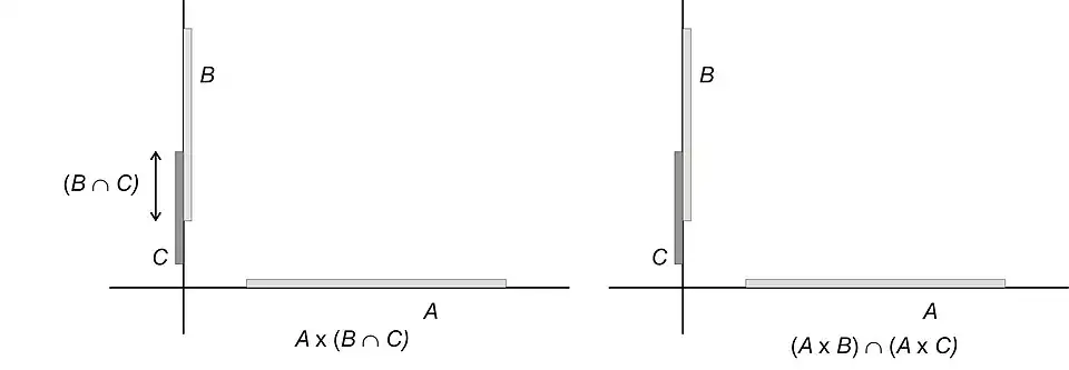 - It is believed that, for any sets A, B and C, A × (B ∩ C) = (A × B) ∩ (A × C).