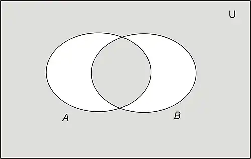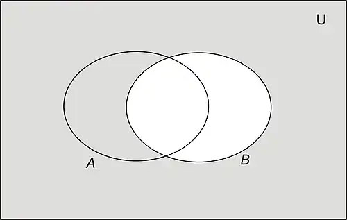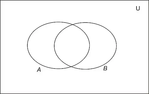 - Make six copies of the Venn diagram shown alongside, and then shade the areas represented by:
