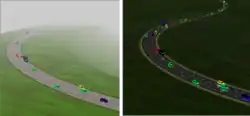 - Follow car: fixes the camera as to follow a vehicle running on the road network.