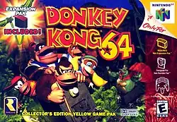 Donkey Kong 64, often abbreviated DK 64, is a 3D platformer video game developed by Rare Ltd. for the Nintendo 64. It was published by Nintendo and first released on November 22, 1999. It is the first and one of very few Nintendo 64 games requiring the use of the Expansion Pak to play. Original releases of Donkey Kong 64 included the Expansion Pak with the game for free. Donkey Kong 64 would later be re-released as a Player's Choice title, though no changes were done to the game itself. The game is a follow up to the Donkey Kong Country trilogy on the Super Nintendo Entertainment System.