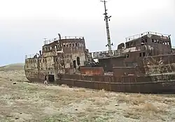 Two abandoned ships in the former Aral Sea, near Aral Kazakhstan.
