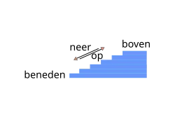 | beneden | down, dowstairs | yes | yes | erbeneden | ― | ― |