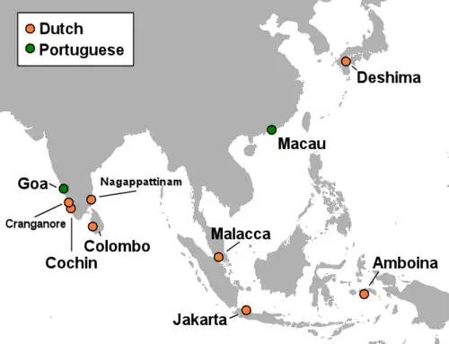 The Dutch found what they were looking for in Jakarta, conquered by Jan Coen in 1619, later renamed Batavia after the Latin name for Holland, and which would become the capital of the Dutch East Indies. Meanwhile, the Dutch continued to drive out the Portuguese from their bases in Asia. Malacca succumbed in 1641 (the first attempt had failed), Colombo in 1656, Ceylon in 1658, Nagappattinam in 1662 and Cranganore and Cochin in 1662. Goa, the capital of the Portuguese Empire in the East, was attacked by the Dutch twice in 1603 and 1610, on both occasions unsuccessfully.