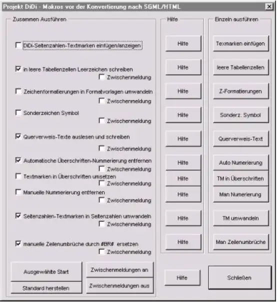 1. Step: Preparing the conversion without using the converter Microsoft SGML Author for Word directly
