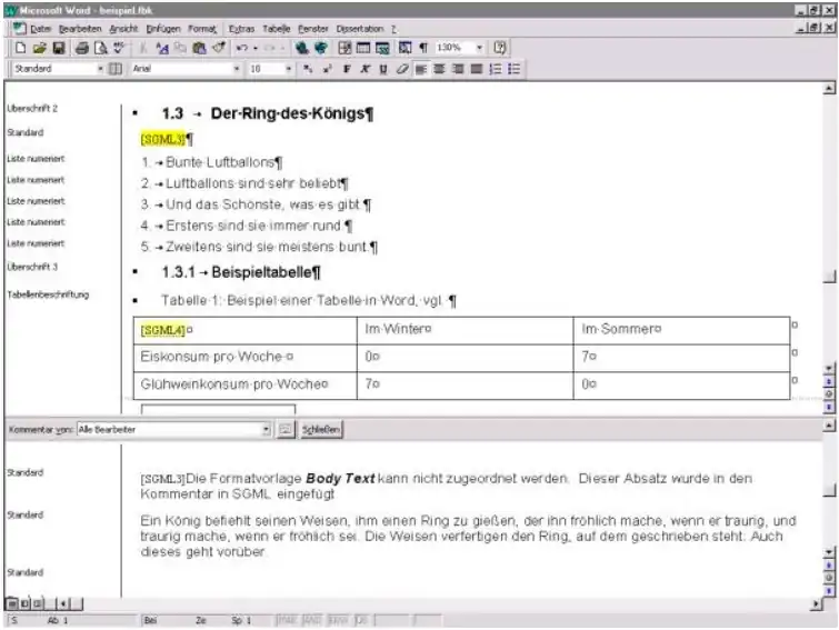 The conversion from a Microsoft Word document into a SGML document, which is an instance of the DiML.dtd that is used at Humboldt-University, takes several steps: