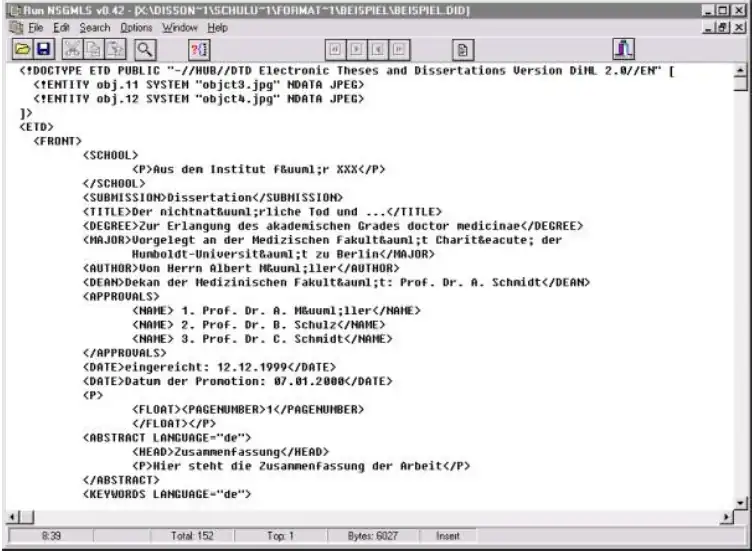 Converter scripts and perlscripts can be obtained from http://www.educat.hu- berlin.de/diss_online/software/tools.exe (Perl scriptc, DTD and converter file for MS SGML-Author for Word - KonverterDiML2_0.dta)