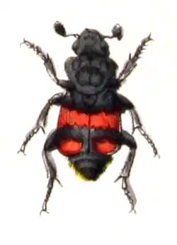 Nicrophorus vespilloides known commonly as the burying beetle.