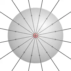 Proof of Maxwell's first equation: we reason about the flux of the electric field produced by a spherical charge through a sphere centered on this charge:
