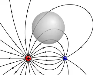 Proof: between the capacitor plates, and is directed perpendicular to the plates. The flow of through a surface between the plates is therefore . So the flux of between the capacitor plates is equal to , the intensity of the current.