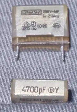 they can be specified by other parameters, including ESR or "equivalent series resistance" (explained above). Also, some capacitors can be specified by UL or other safety rating. A "X" type capacitor indicates that the capacitor meets certain standards one of which is that it is appropriate to be used with line-level voltages (such as 117 or 220 V) typically found from the wall outlet, as well as that it can withstand surges typically found in power distribution systems.