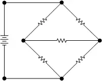 In Figure 3 (a), if the three resistors in the outer loop of the circuit are R1, R2 and R3 and the other resistor is R4. It is simpler to see what is going on if we combine R2 and R3 into their series equivalent resistance . It is clear now that the equivalent resistance is R1 in series with the parallel combination of and R4. If we want to calculate the voltage across the parallel combination of R4 and then we just use voltage divider.