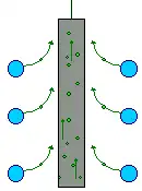 | The liquid electrolyte is connected to a battery or power supply. The electrodes must not touch! |