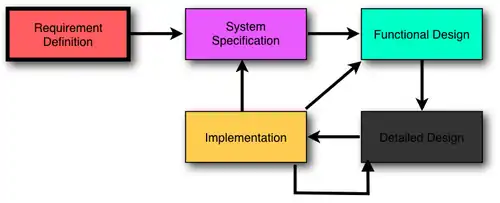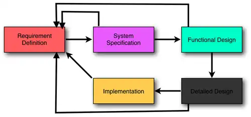 A typical project in this environment goes on the cycle shown in figure 1. Starting from the "requirement definition", which can be defined by the design team or deduced from a market research, the process undergoes a level of more and more details. It's convenient that issues are coming up in the "system specification", "functional design" or "detailed design" step by which the requirements need to be adjusted.