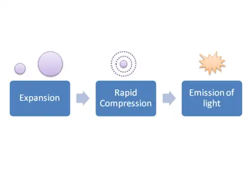 This phenomena occurs when a single bubble encounters a non linear dynamic, namely, rapid compression of bubble preceded by an expansion which takes place slowly. When the bubble is compressed rapidly, it can get so hot that it emits a flash of light