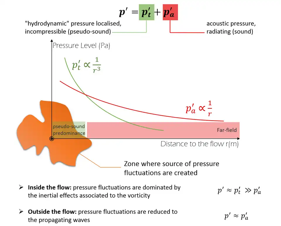 - Quadrupole sources: Constituted of two dipoles side by side in phase opposition, these sources cames from turbulent vortices and are usually neglected at low velocity flow. They originate from shear-terms in Navier-Stokes equations.