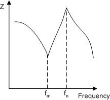 For very low frequencies, the spring term dominates because of the relationship. Thus, the phase of the impedance approaches for very low frequencies. This phase causes the velocity to "lag" the force for low frequencies. As the frequency increases, the phase difference increases toward zero. At resonance, the imaginary part of the impedance vanishes, and the phase is zero. The impedance is purely resistive at this point. For very high frequencies, the mass term dominates. Thus, the phase of the impedance approaches and the velocity "leads" the force for high frequencies.