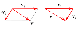 Vectors obey the parallelogram law of combination. This law states that the free vectors, and , can be replaced by , which is the diagonal of the parallelogram formed by the two free vectors as its sides, as in Figure 1.2a. This is known as the vector sum, which can be expressed mathematically as below.