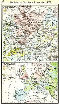 Though the European witch trials began in the early sixteenth century and gained traction throughout the Protestant Reformation, the religious ideas utilized during the trials had been seen much earlier. In 1374, Pope Gregory XI declared that demons aided the practice of magic; 100 years later, Pope Innocent VIII published Desiring with the Greatest Ardour, which condemned witchcraft.[8] By 1517, the beginning of the Reformation, witchcraft was widely condemned by the Catholic Church. Starting in 1560, the trials spread throughout Europe. Economists Peter Leeson and Jacob Russ argue that the Protestants used the witch trials as a form of coercion because Catholics and Protestants both wanted to convert Europeans to their religions. The regions with the highest concentrations of the trials were also populated by Protestants. Germany, the birthplace of the religion, had 40% of the witch trials. Protestantism also spread to Switzerland, France, England, and the Netherlands, and these regions contained 35% of the trials. Meanwhile, Catholic nations—Spain, Italy, Portugal, and Ireland—contained only six percent.[9]