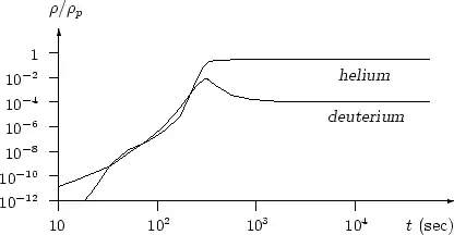 Already in a few seconds after the Big Bang nuclear reactions started to occur. The protons and neutrons combined very rapidly to form deuterium and then helium. During the very first seconds there were too many very energetic photons around which destroyed these nuclei immediately after their formation. Very soon, however, the continuing expansion of the universe changed the conditions in favour of these newly born nuclei. The density decreased and the photons could not destroy them that fast anymore.