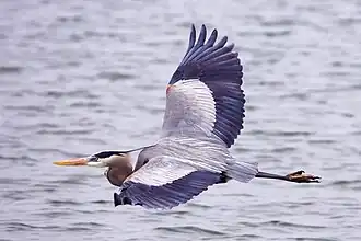 The Great Blue Heron, Ardea herodias, is a wading bird of the heron family, common all over North and Central America as well as the West Indies and the Galápagos Islands, except in deserts and high mountains where there is no water for it to wade in. The Great Blue Heron is the largest heron in North America.