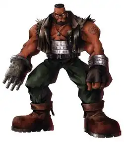 Leader of the terrorist group AVALANCHE, and bitter enemy of the Shinra. He grew up in the mining town of North Corel, where he was involved in a decision to have the town switch from mining coal to using Mako energy, against the protests of his friend Dyne. The decision turned out to be disastrous for the people there, and both him and Dyne lost one of their arms after an attack from the Shinra. Barret had an operation to have his arm replaced with a gun, and learned that Dyne did the same. He adopted Dyne's daughter, Marlene, and traveled to Cosmo Canyon where he learned about the harm the Shinra and their Mako reactors were inflicting upon the planet. He came to live in the Midgar slums, where he took command of a group called AVALANCHE to fight back against what he believed the Mako reactors were doing to the planet.