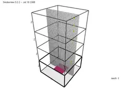 All FDS calculations must be performed within a domain that is made up of rectilinear volumes called meshes. Each mesh is divided into rectangular cells, the number of which depends on the desired resolution of the flow dynamics. Some initial conditions are prescribed for the flow domain via the INIT namelist group.